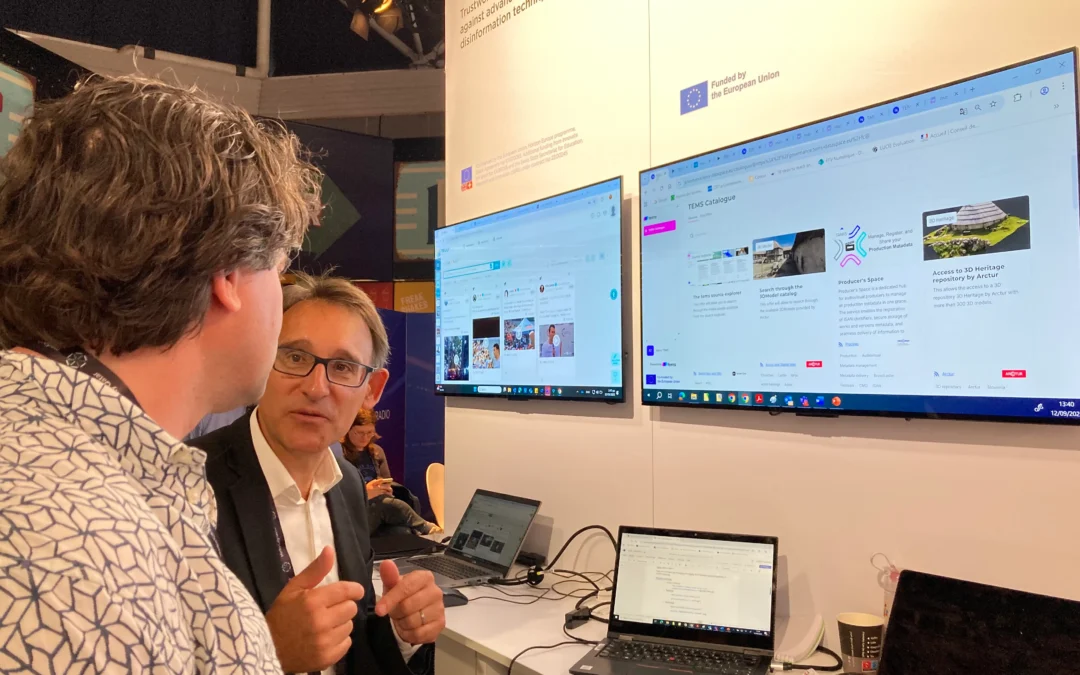 La présentation de TEMS, dans la “Future Zone”, a illustré comment les organisations médias peuvent partager en toute sécurité des métadonnées, des informations sur les droits et des descriptions de contenu dans un environnement commun. Le scénario embarquait des diffuseurs, des agences de presse et des équipes de production travaillant ensemble pour améliorer la découverte de contenu, réduire les doublons et rationaliser l’octroi de licences. Il s’agissait d’un exemple concret de la manière dont les espaces de données peuvent contribuer aux workflows quotidiens sans nécessiter de changements majeurs des systèmes existants.